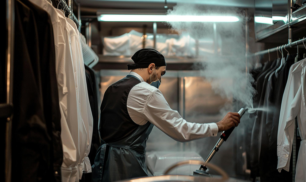 Tratamiento de limpieza en seco para prendas delicadas, cuidando tejidos y colores con un acabado impecable.